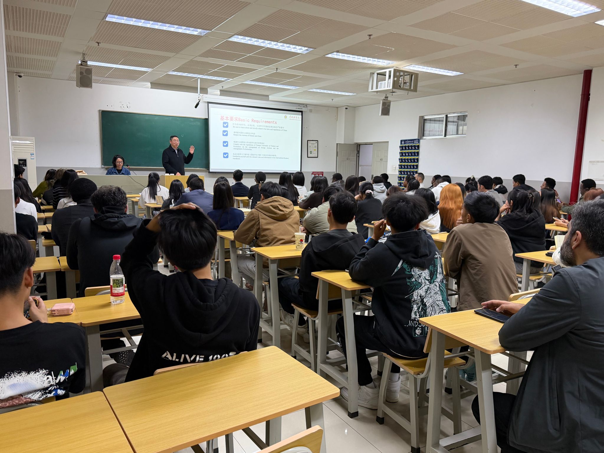 随后,国际学生管理中心聂绪伟老师向新生们系统介绍了与中国法律法规和学校规章制度密切相关的重要事项。内容涵盖外事手续办理、教学管理要求、安全注意事项、身心健康管理、防范电信网络诈骗、宿舍管理规定、日常生活纪律、请假制度、中外文化差异提示以及保险条款说明等。聂老师特别要求全体国际学生自觉主动学习了解并严格遵守相关法律法规与校纪校规,筑牢安全意识,积极养成良好生活和卫生习惯,保持身心健康。他还详细告知新生在遇到困难和问题时正确的求助渠道与处理方式,表示学校将全力为同学们提供必要的指导和支持。