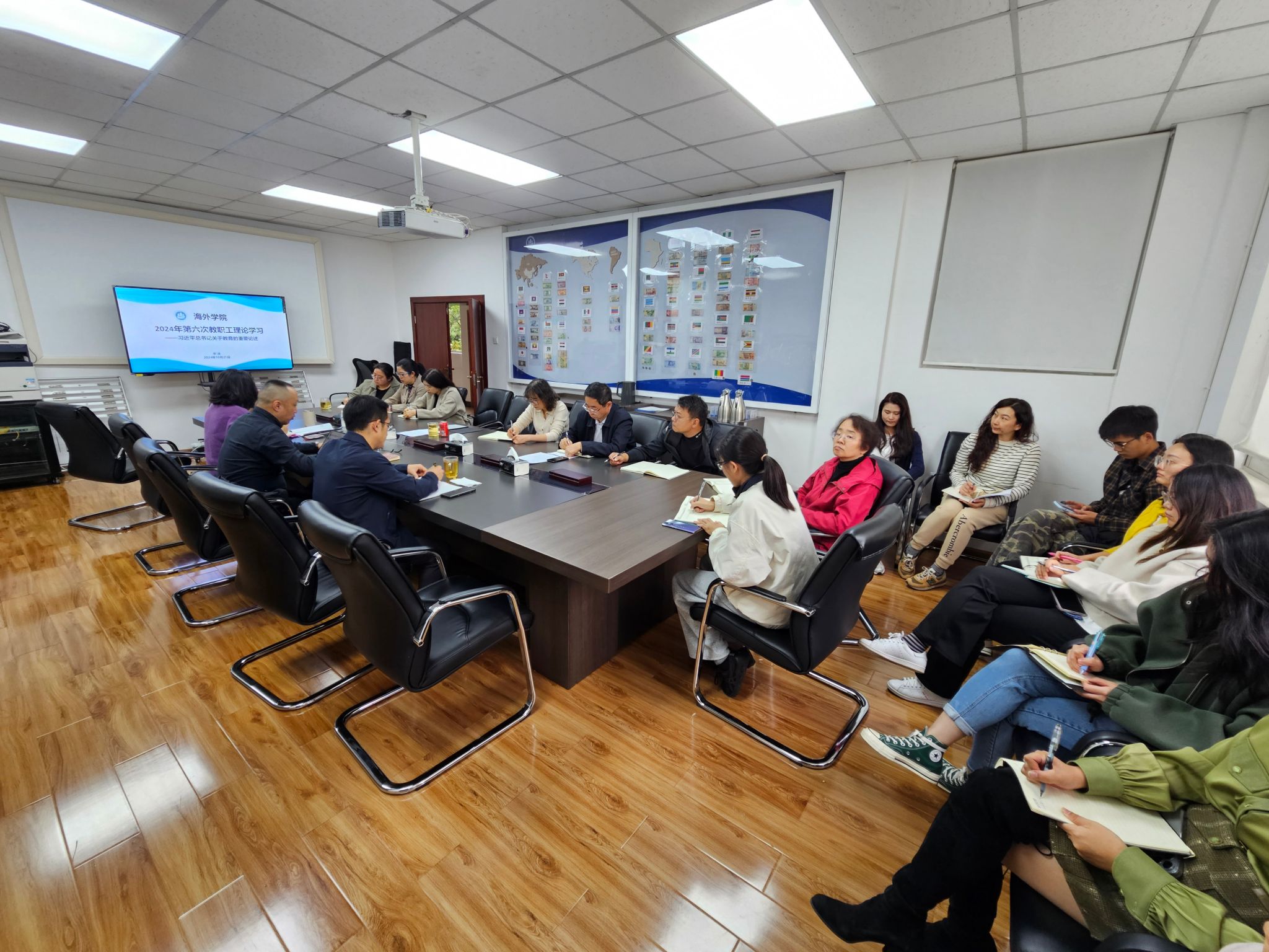 2024年10月21日上午,海外学院在景贤楼305开展2024年第六次教职工理论学习——深入学习习近平总书记关于教育的重要论述。海外学院院长余泳领学,全体教职工参加。