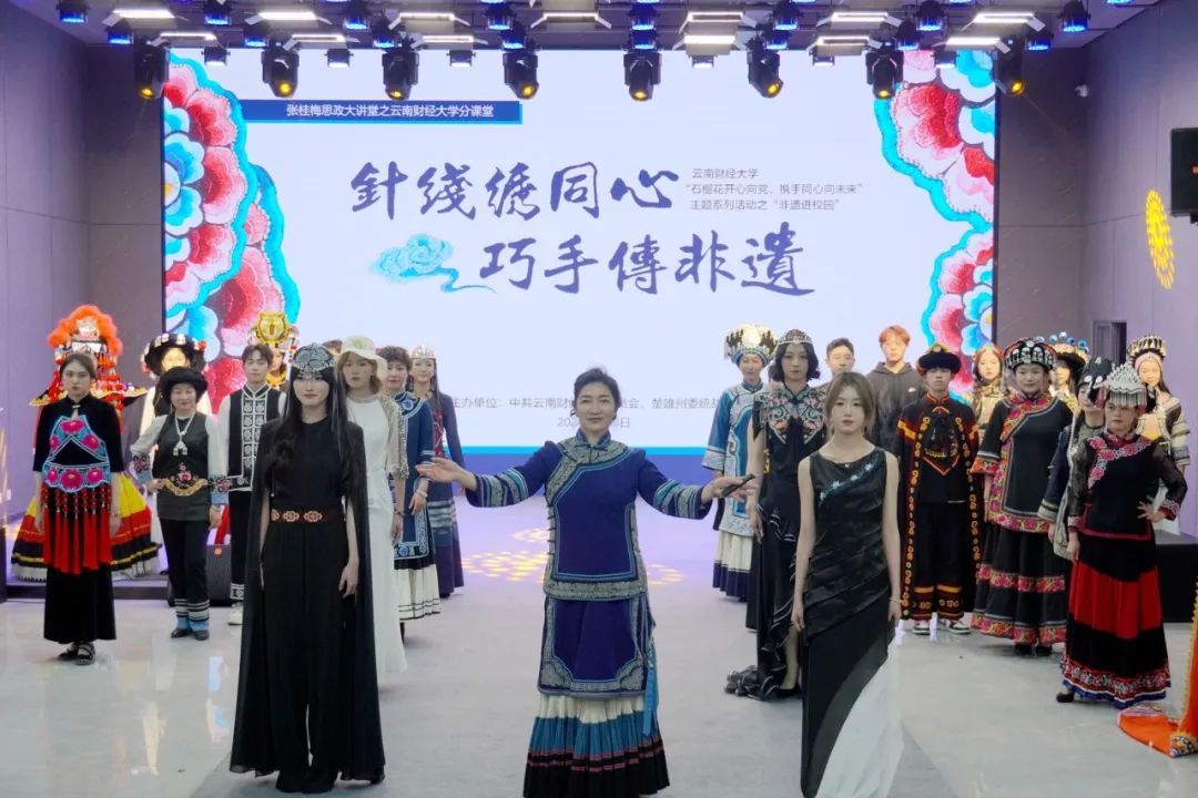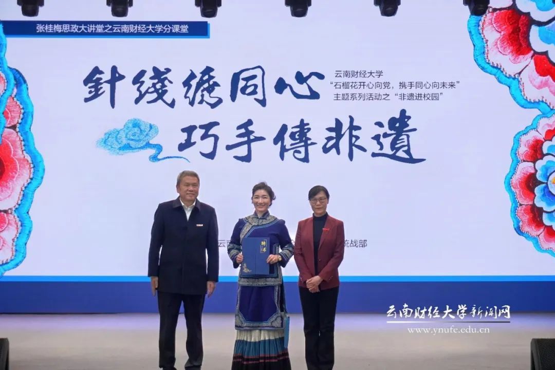 为铸牢中华民族共同体意识,弘扬中华优秀传统文化,推进非物质文化遗产进校园,让文化遗产“活”起来,3月8日下午,由十大买球官方网站与楚雄州委统战部联合主办的“石榴花开心向党,携手同心向未来”主题系列活动之“非遗进校园”活动暨张桂梅思政大讲堂云财分课堂在龙泉路校区云彩“一站式”学生中心举行。