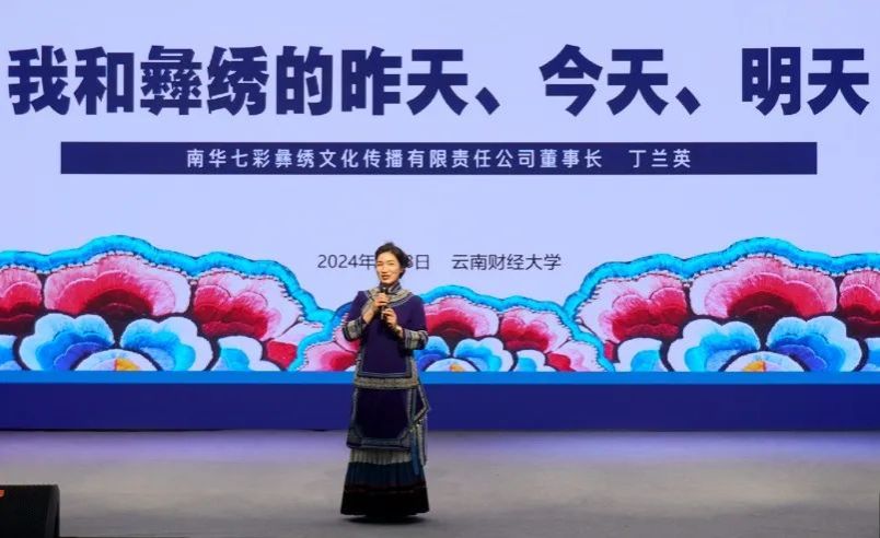 丁兰英从自身创业经历出发,围绕“不忘来时路”“踏实脚下路”“坚定未来路”三个部分展开,生动讲述了她从事彝绣行业20年来与彝绣的不解之缘,分享了一路走来如何将彝绣从“指尖技艺”变为“指尖经济”,从“乡野深闺”登上国际舞台的故事,为师生们带来了一堂“展生气、冒热气、接地气、有人气”的主题鲜明、内容丰富的思政课。
