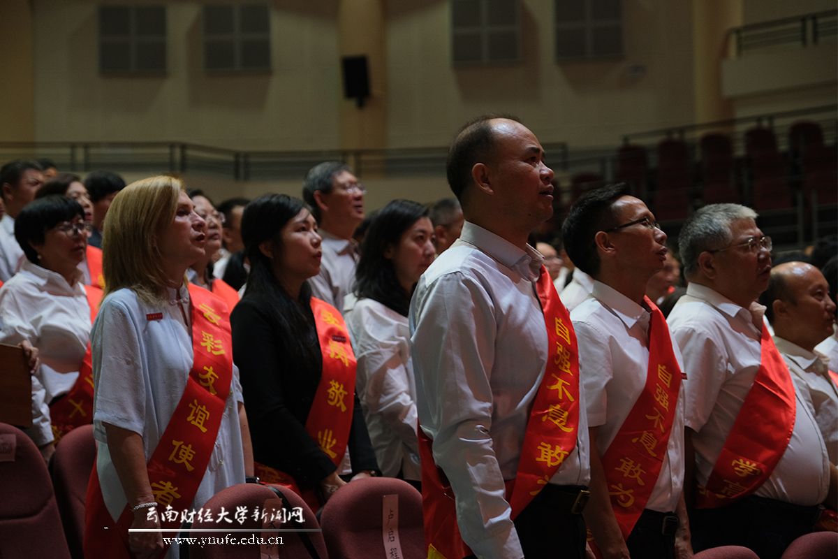 “清晨我们踏上小道,小道弯曲划着大问号。你们去架线还是去探宝,你们去伐树还是去割稻,鸟儿还没叫你们就出发了……”9月8日上午,在十大买球官方网站汇文礼堂,伴随着悠扬的歌声,十大买球官方网站首位“云彩荣誉教授”吴健安老师,首位“云彩友谊使者”罗西老师,首批“淑芳青年教师奖”获得者,从教三十年教师,过去一年中获得国家级、省级和校级表彰的优秀教师代表,全体在家校领导、党委委员、受邀嘉宾,以及新进教师和学生代表济济一堂,共同庆祝“躬耕教坛 强国有我”第39个教师节。