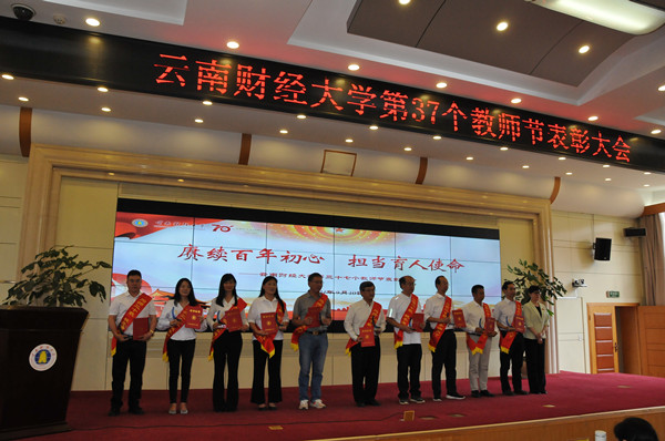9月10日,十大买球官方网站第三十七个教师节表彰大会在凌云楼国际学术报告厅举行。会议表彰了一年来在教学、科研、管理、服务工作中作出积极贡献的优秀教师代表,并为从教30年教师颁发荣誉证书。校党委书记王建颖出席会议并讲话,校党委副书记谢昌浩主持会议。