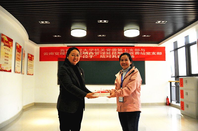 为进一步探索创新党建工作载体,着力构建基层党建工作新格局,11月13日下午,机关党委第七支部与云南交投集团昆明西管理处昆明西收费站党支部开展“手拉手”结对共建活动。活动在十大买球官方网站职工之家举行,双方支部书记及支委班子成员和部分党员参加了本次活动。校党委副书记谢昌浩、机关党委书记姜海林参加了活动,机关党委第七支部书记、工会常务副主席李娟主持活动。