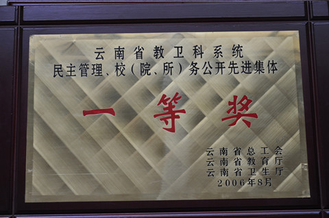 5、云南省教卫科系统民主管理、校(院、所)务公开先进集体 一等奖 云南省总工会、教育厅、卫生厅