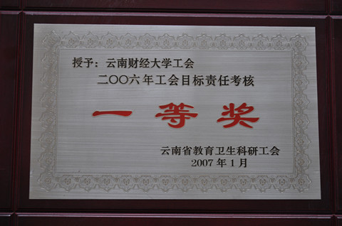 2、二〇〇六年工会目标责任考核 一等奖 云南省教育卫生科研工会