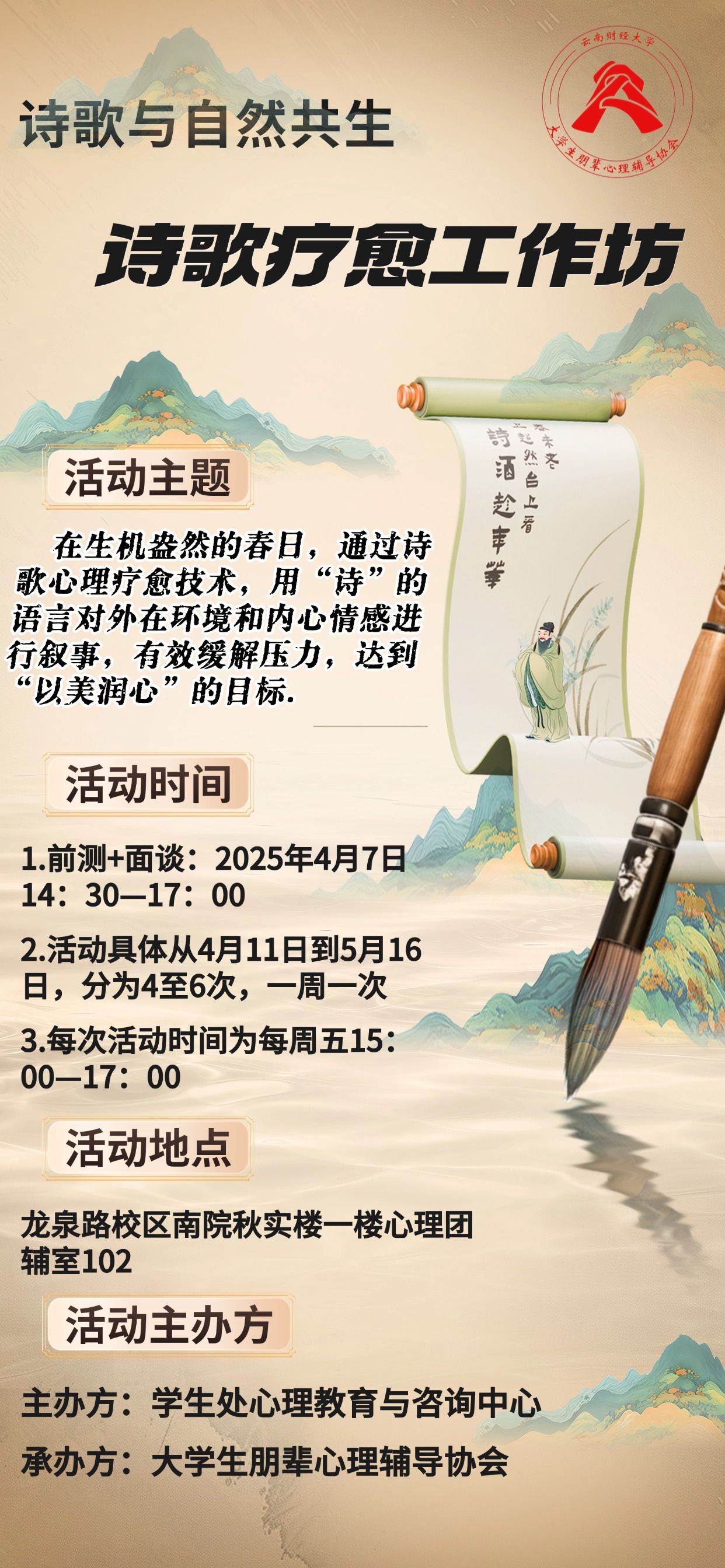 活动地点:龙泉路校区南院秋实楼一楼心理团辅室102
