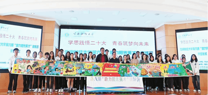 第六期“助力阳光英才计划”训练营为期2个月,以“学思践悟, 青春筑梦”为主题,围绕思想教育类、技能提升类、政策宣传等内容,设置了学习党的二十大精神专题讲座、实地参观、实践体验、素质拓展、资助政策宣讲等主题活动,同时将“党的二十大金句摘抄”书法大赛、品读红色家风家训、做客小金电台分享学习体会等内容贯穿活动始终,为家庭经济困难学子搭建一个提升自我、拓展能力、开阔视野、互动交流的平台,充分发挥资助在大学生全面发展、成长成才过程中的育人作用。