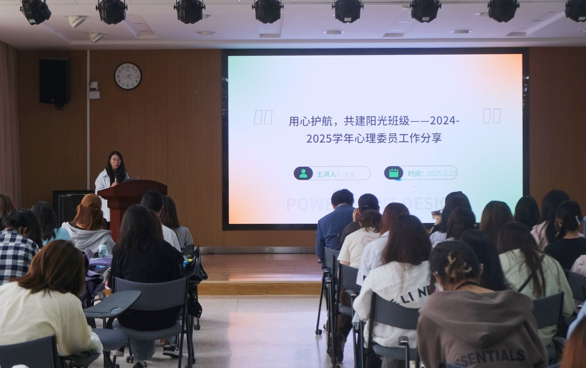 心理教育与咨询中心陈瑜婕老师对2024-2025学年全体心理委员为服务同学们心理健康所做的贡献表示感谢,并对心理委员们动态监测班级心理状态、定期提交“晴雨表”、开展心理健康主题班会、组织班级同学完成心理健康测评、协助开展心理危机干预等工作给予肯定。中心冉博文老师随后组织心理委员开展了工作培训,通过潜水与心理工作类比,深入浅出地讲解了心理能量和班级共同支持的重要性。