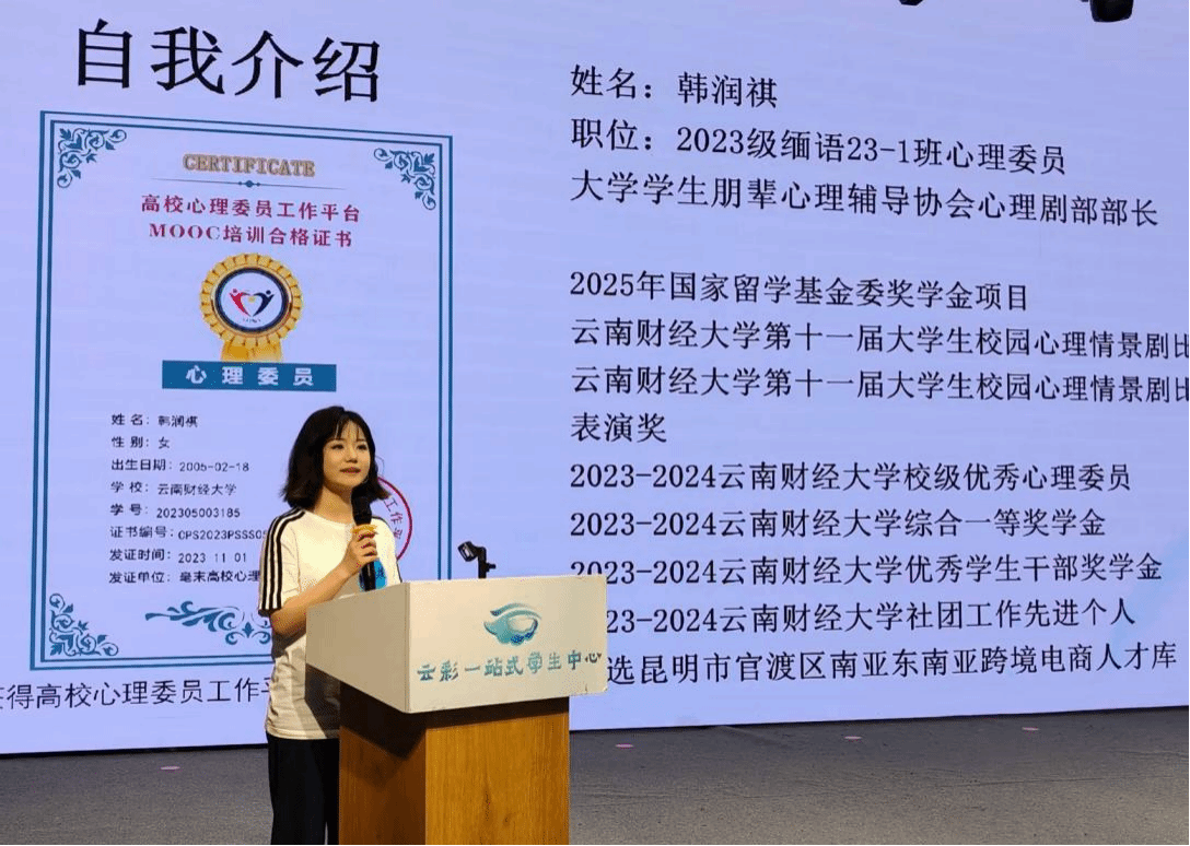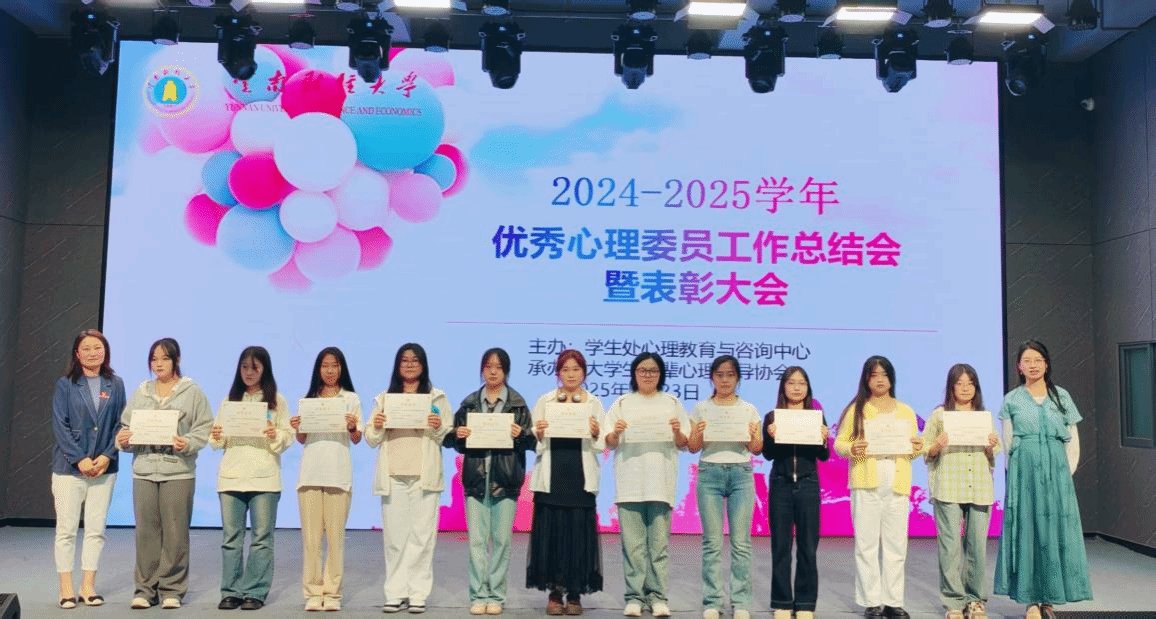 会上宣读了《关于表彰2024-2025学年优秀心理委员的决定》,对102名优秀心理委员进行了表彰,优秀心理委员代表们结合工作实际进行了分享交流,会计(审计)学院会计23-2班蔺雪润分享了“量化工作进度+个性化关怀”的工作模式;法政学院法学22-3王婷从实际案例出发,诠释了“真心、诚心、用心”的心理委员精神;商学院互联23-1班李沣倩分享了上一次心理委员工作总结会中学到的工作经验及实践应用;国际语言文化学院缅语23-1班韩润祺从心理剧角度分享了自己的成长体验以及如何通过心理剧开展朋辈心理健康服务。此外,8名优秀心理委员分别从职责定位、活动策划、能力提升、成长发展等方面,分享了自己作为心理委员的实践经验和感悟。