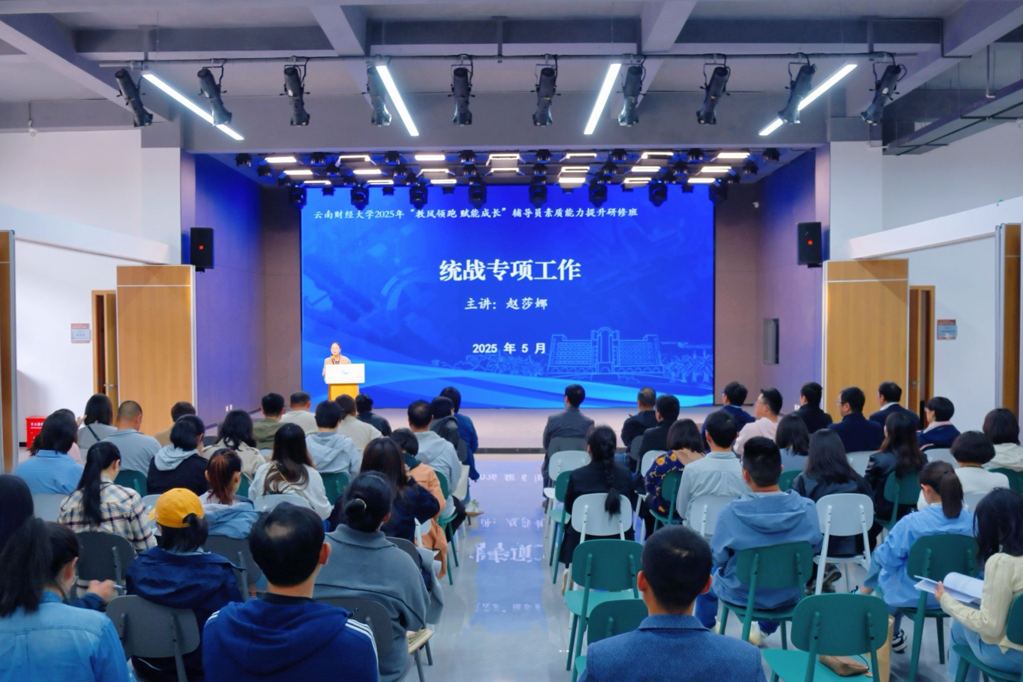 为全面提升辅导员队伍育人水平,夯实学风建设根基,5月30日下午,2025年“教风领跑 赋能成长”辅导员素质能力提升研修班第1期专题培训在龙泉路校区云彩“一站式”学生中心“大思政·小剧场”举行。学校统战部副部长赵莎娜为辅导员、班主任作民族宗教政策和业务工作专题培训。各学院(培养单位)党委副书记、学管科科长、团委书记、辅导员、班主任代表90余人参加培训。