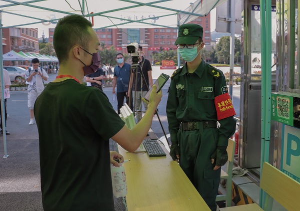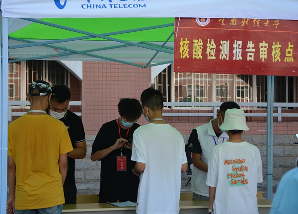培训及演练地点设在校本部南院东门辛阳广场,分为学生报到检测验证区、行李消毒点、核酸检测核查点、体温复测点、身份核验检测区,根据学校“一查二消三测四核五入住”报到流程开展学生报到工作培训及演练。