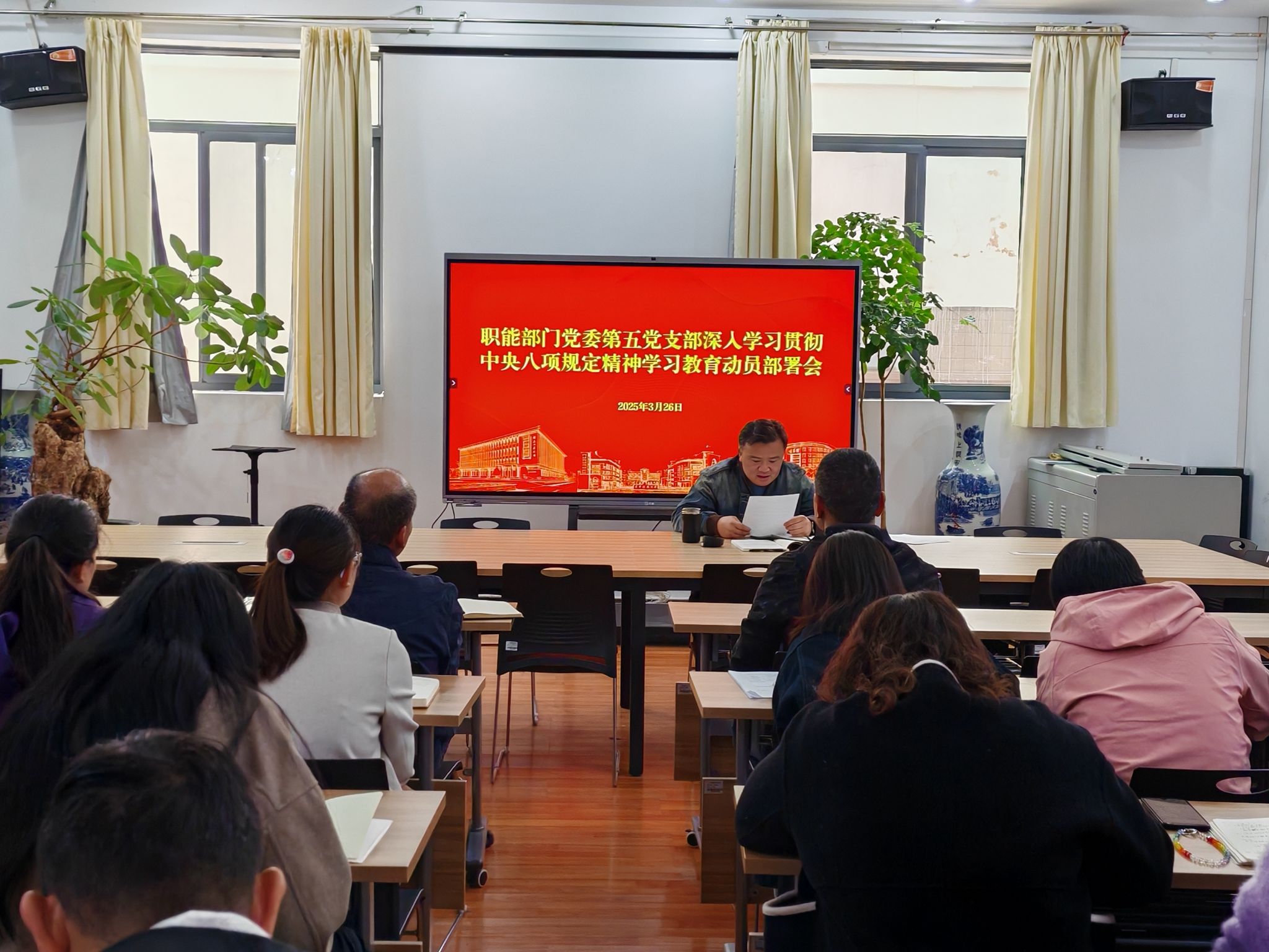 为深入贯彻中央八项规定精神,强化党员干部廉洁自律意识,紧密结合学校“三风”建设、“三规治校”、“清廉学校”建设以及本科教育教学审核评估、博士点建设、“为师生办实事”等中心工作,3月26日,职能部门党委第五党支部组织全体党员开展深入贯彻中央八项规定精神学习教育,会议由党支部书记沙磊主持,全体支部党员参加。