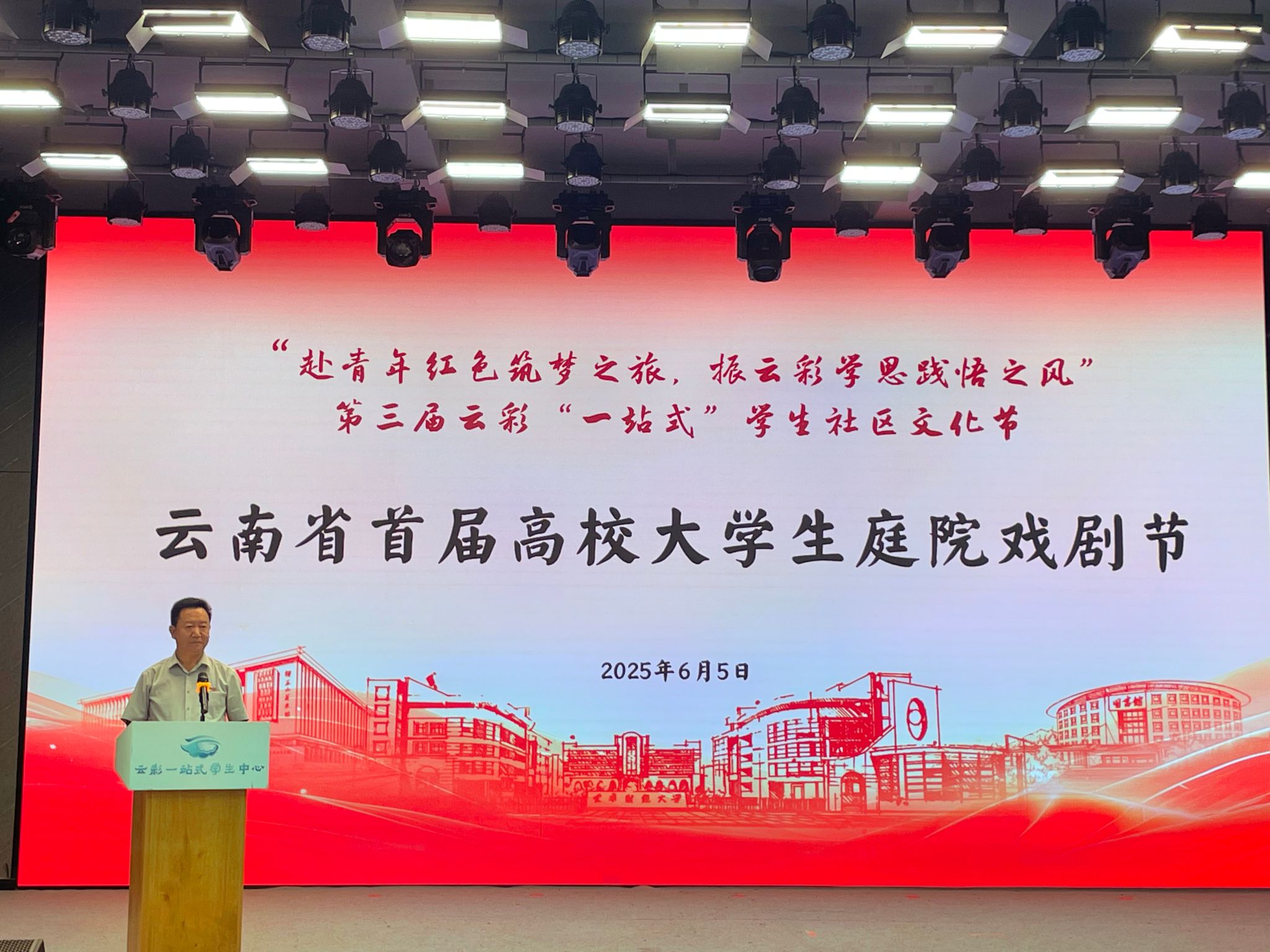 2025年6月5日,十大买球官方网站第三届云彩 “一站式” 学生社区文化节暨云南省首届高校大学生庭院戏剧节正式启动。本次活动由云南演艺集团有限公司与十大买球官方网站联合主办,活动以“庭院万象・戏聚云南”为核心,旨在通过庭院戏剧这一创新形式,青春梦想舞台,推动校园文化与本土艺术深度融合。