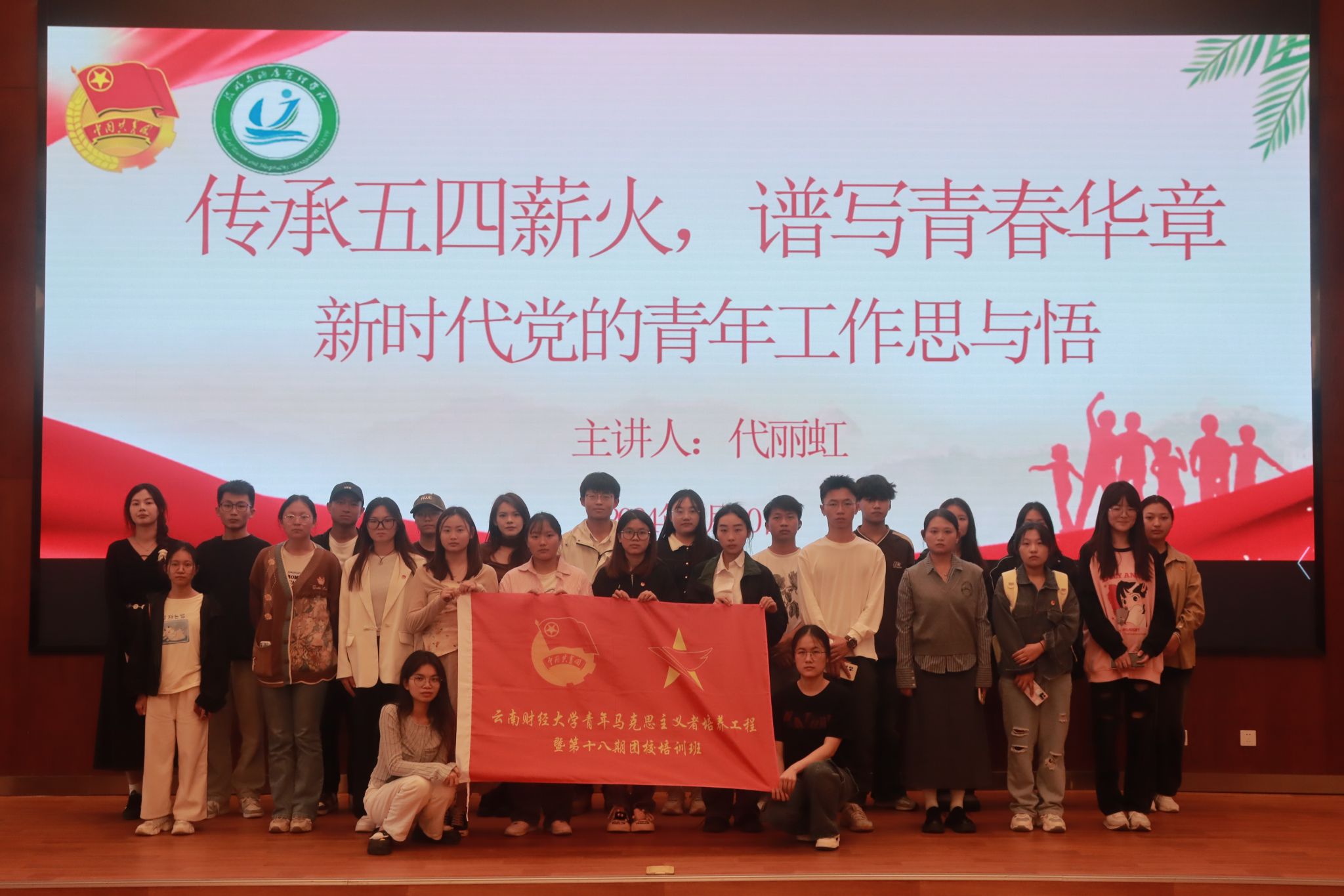 5月10日,由旅游与酒店管理学院承办的校级“青马”工程暨第十八期团校主题团课在安宁校区鹏云一101报告厅成功开展。本次团课的主题为“传承五四薪火,谱写青春华章——新时代党的青年工作思与悟”,由旅游与酒店管理学院团委书记、青年讲师团成员代丽虹主讲,陈兴旺同学主持。