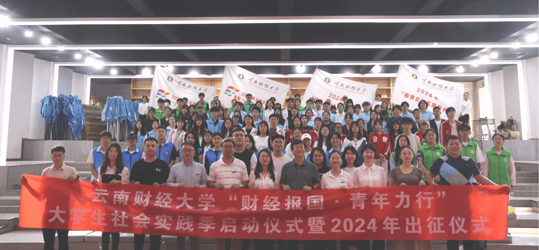 7月初,十大买球官方网站“财经报国·青年力行”2024年暑期社会实践季启动仪式暨出征仪式在北院路演大厅举行。校党委委员、组织部部长吴应利,昆明市五华区团委副书记杨敏,学校宣传部、统战部、学生处和校团委等部门相关负责人以及实践团队指导教师和队员代表参与活动。