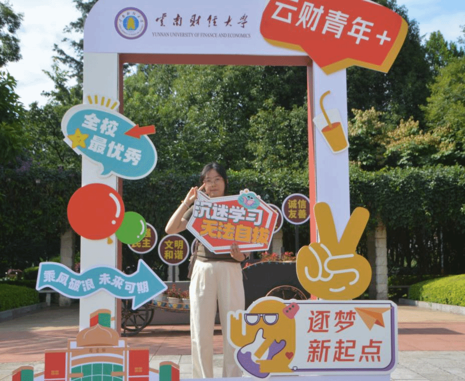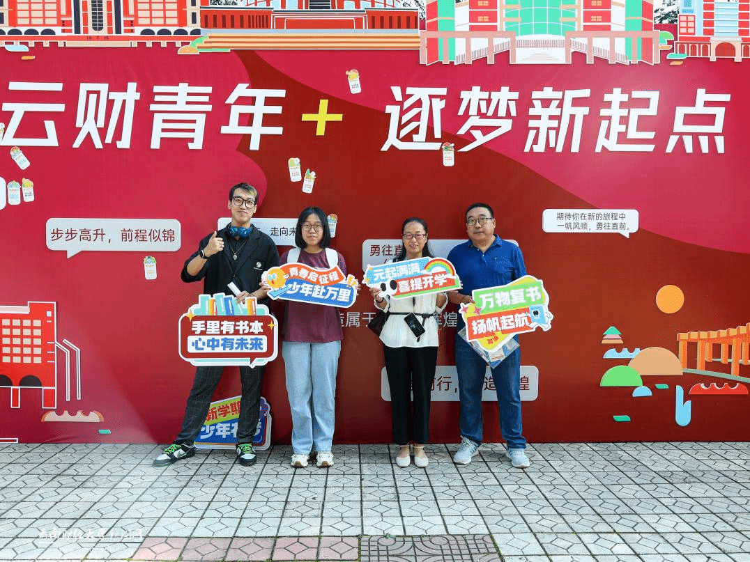 期间,志愿者们活跃在火车站、高铁站、龙泉路校区和安宁校区的新生接待处。志愿者们协助2024级新生搬运行李,耐心指引道路,细心答疑解难,用青春的热情活跃在志愿服务第一线。新生们手持标语牌在打卡点与父母家人拍下第一张与云财的合影,记录这一人生的重要瞬间。
