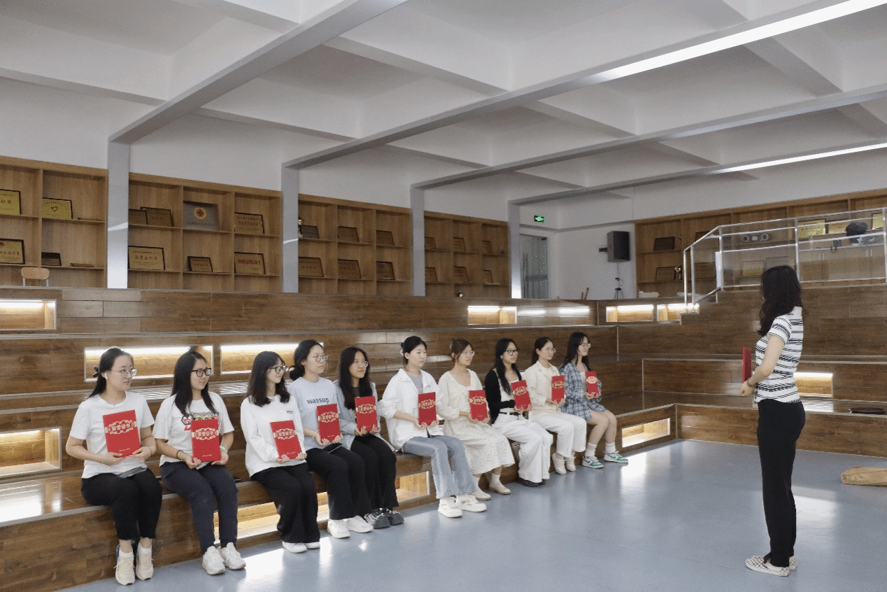 培训现场,方婉婷从仪容仪表、礼仪服装、基本姿势、相关工作四个方面展开培训,并通过实例讲解、实操演练、情景模拟、我问你答等方式,让参加培训会的礼仪队员们全面、快速掌握相关知识与实用方法。方婉婷在进行基本姿势的讲解时现场示范并帮助礼仪队员们一一纠正。例如在礼仪接待时,应左右手四指并拢,大拇指内扣,右手搭在左手上面,手掌与手臂呈一条直线,双手自然轻贴于腹前。培训会上礼仪队员们积极参与互动,彰显学礼热情。