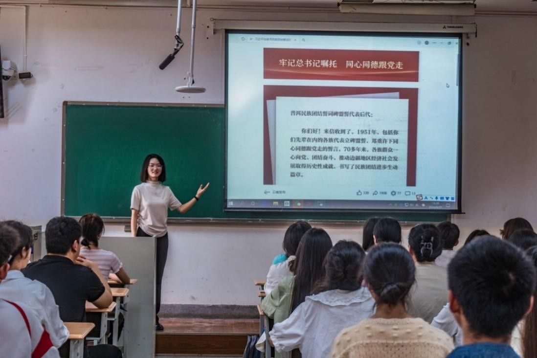 9月27日,校团委在北院卓远楼组织全体学生干部深入学习了“习近平总书记给普洱民族团结誓词碑盟誓代表后代的回信”。