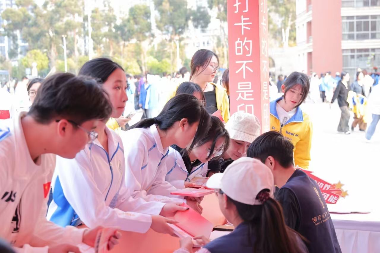 在宿舍楼口,每天上午7:15前“走出宿舍”的云财青年可参与打卡集章,将“走出宿舍”,作为破茧成长的起点,用行动打破“宅文化”。
