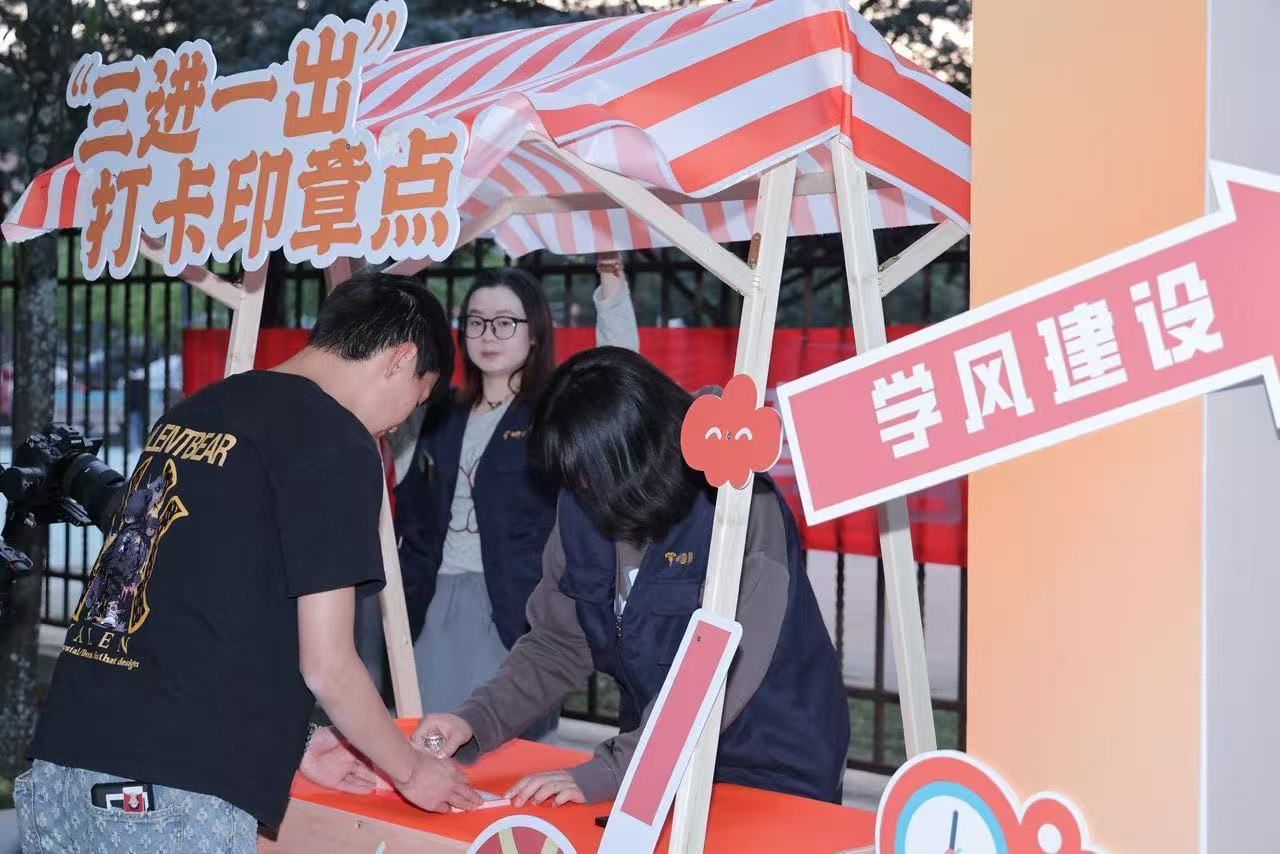 在学校党委指导下,校团委通过深入调研,牵头锚定“宿舍门、教室门、图书馆门、运动场门”这“4个关键节点”,精心谋划“4个行动计划”,设计精美的“三进一出成长记录手册”,通过“集章打卡”模式,引导同学们实现从“要我做”到“我要做”的转变,打造服务青年成长新阵地。
