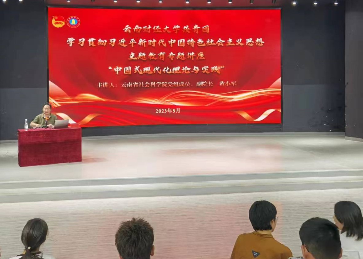 为深入学习贯彻党的二十大精神,了解掌握中国式现代化的内涵,2023年5月26日晚,云南省社会科学院党组成员、副院长,云岭文化名家,中共云南省委宣讲团成员黄小军教授以“中国式现代化理论与实践”为主题,在北院路演大厅为物流与管理工程学院青马团校全体成员和其他专业同学上“信仰公开课”。