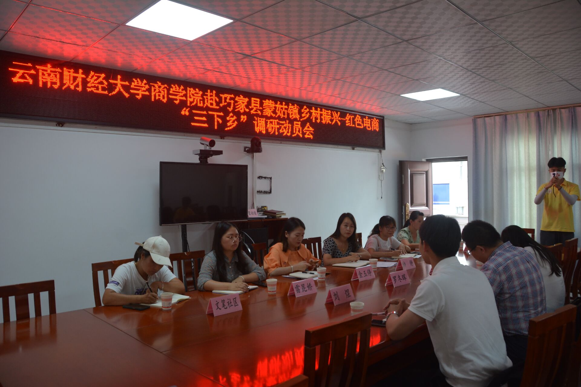 7月4日,商学院罗冬晖、刘煜、曹明珏带队赴巧家县蒙姑镇人民政府开展“乡村振兴——红色电商”主题调研。调研会由蒙姑镇党委副书记帅静主持。蒙姑镇团县委书记金玉停、副镇长曹发令、蒙姑社区和文笔社区代表参会。
