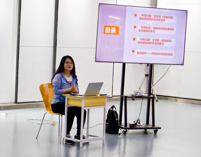 校宣传部新闻中心新媒体编辑部主任吴炳昕老师从照片拍摄、纪实类新闻稿写作等方面进行培训,为同学们的三下乡在技术上进行指导。