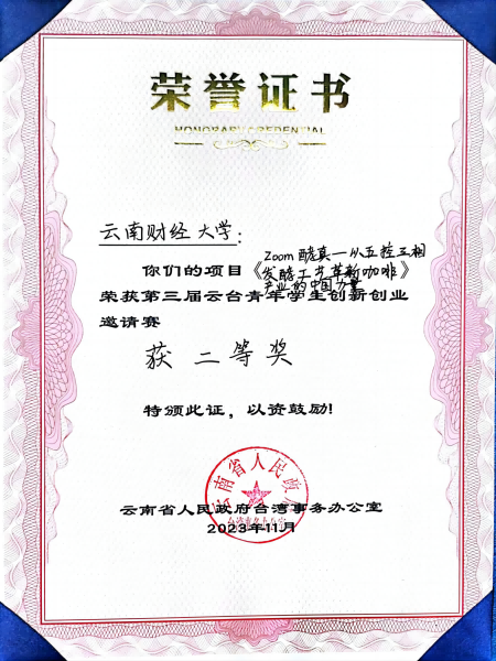 《Zoom 酵真——以五控三相发酵工艺革新咖啡产业的中国力量》项目由铁婧、吴迪老师指导。比赛中展示及答辩环节获得了现场评委老师和观众的一致好评。项目负责人钟木腾同学向领导及老师汇报了项目的最新进展。