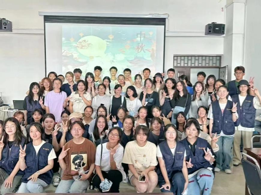 首先,志愿者以热情的开场白欢迎了同学们和留学生的到来。在志愿者们的带领下,同学们观看了有关中秋节历史和传统习俗的视频,更深层次地了解中秋节所承载的民族文化记忆。随后,志愿者们进行了“中秋传说有奖问答”环节,同学们踊跃发言。在活动中,志愿者们介绍了桂花酒、月饼等中秋节特有的美食。为让同学们沉浸式感受中秋氛围,此次活动带领大家共同制作了冰皮月饼,来自老挝和越南的留学生同学也积极参加,体验了樱花、茶花、莲花等多个花色模具,现场气氛十分热烈。最后,同学们对制作成品进行了展示,互相交流了本次活动的感想,并合影留念。留学生同学也对此次活动表示了高度赞扬,希望之后能继续参与到此类活动中。