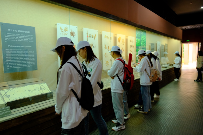 一楼大厅分别是党的二十大精神展和华夏五十六个民族展,实践队深入学习了党的二十大精神,深刻领悟大会主题、党过去五年的工作和新时代十年的伟大变革。同时,通过观展逐一认识五十六个民族,感受各民族在党的领导下共赴小康的劳作风采。随后,实践队先后参观了民族文字古籍展厅、民族乐器展厅、民族工艺美术展厅等,观摩学习了各少数民族灿烂的文字、语言、乐器、手艺文化和工艺文化。