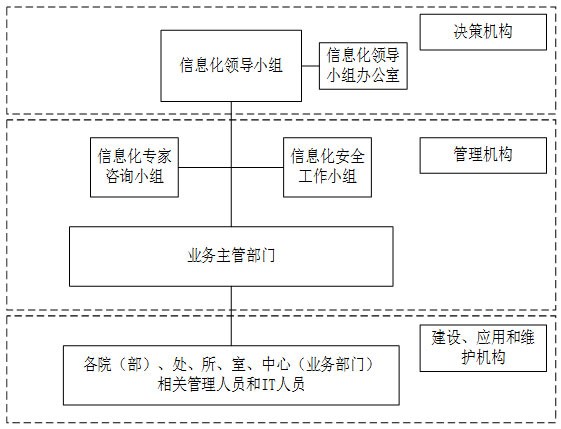 第六条 管理机构组成:信息化专家咨询小组,信息化安全工作小组以及各业务主管部门是学校信息化管理的执行机构,对信息化领导小组负责。其中信息化专家咨询小组由校内外专家组成;信息系统安全工作小组由党委(校长)办公室、党委宣传部、学生处、团委、保卫处、信息管理中心等部门负责人,各院部分管学生工作的书记,以及符合信息系统安全工作条件的专业技术人员和部分管理人员组成。