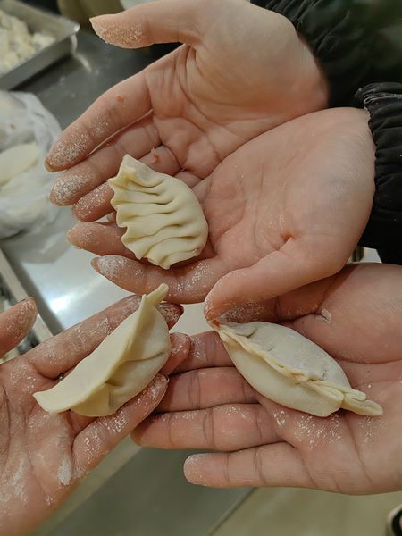 热闹非凡的包饺子环节,校友们大展手艺,元宝型饺子、麦穗型饺子、月牙型饺子,形状各异。饺子,象征着团圆与和睦。每一个饺子里都包含着一份浓浓的祝福,及对新一年的期盼。
