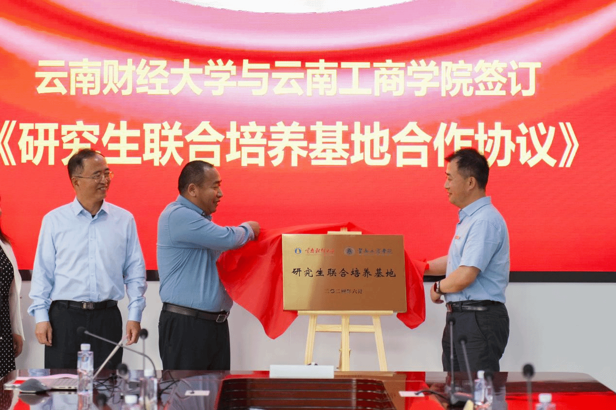 2024年6月14日,十大买球官方网站党委委员、副校长余怒涛带队赴云南工商学院开展研究生联合培养座谈交流。双方签订了共建研究生联合培养基地协议并举行基地揭牌仪式。云南工商学院执行董事长姬其佐、校长蒋永文、副校长马晓红参加座谈交流和签约揭牌仪式。