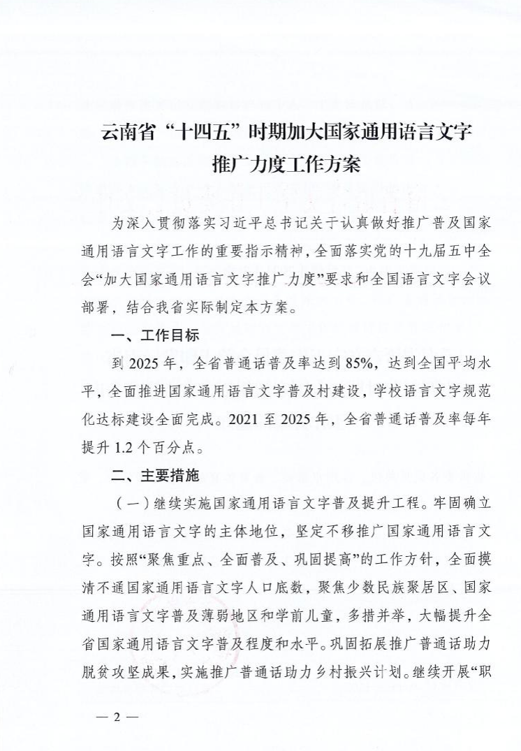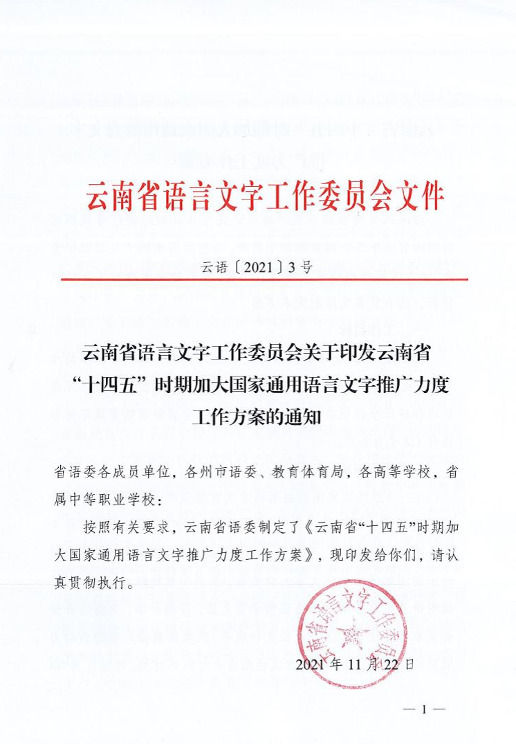 云南省语言文字工作委员会关于印发云南省“十四五”时期加大国家通用语言文字推广力度工作方案的通知