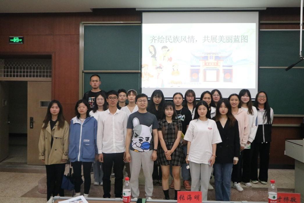 各参赛小组依次上台介绍海报绘画作品,结合海报主题、色调、构成元素、图案意义等开展介绍。首先登台的是身穿白族服饰的白族参赛选手,他有条不紊地介绍了海报绘画的创作理念,将民族团结与民族文化融合在一起,利用简要的元素,创作出了一幅优美而又富有内涵的海报。紧接着各小组纷纷介绍了海报绘画作品,他们有的突出作品立意,有的联系民族经济发展,有的讲解海报中民族元素特点。在大众评委的评选和评委老师的评分中,完成了作品评选,参赛组同学为观众们带来了一场文化交流体验会。