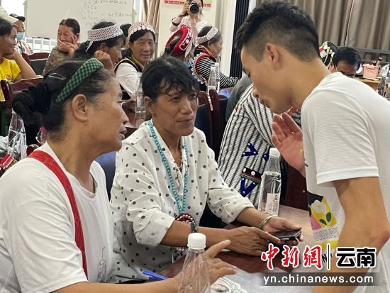 学生杨嘉腾为怒江老人讲解智能手机的使用