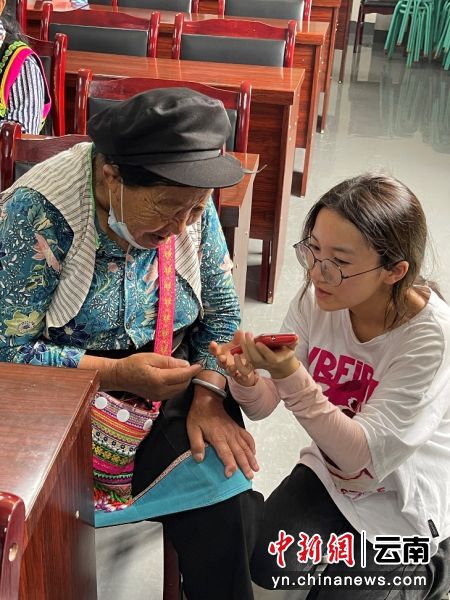 学生吉秋芸为怒江老人讲解智能手机的使用