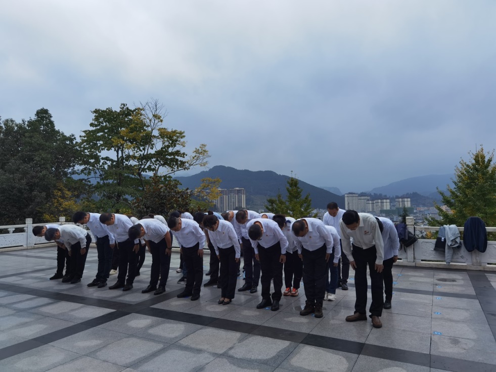 在扎西红军烈士陵园,大家静静地聆听了徐策、龙厚生、殷䘵才等革命烈士英勇牺牲的事迹,瞻仰了长眠着川滇黔边区游击纵队83名英烈的墓地。在庄严肃穆的扎西红军烈士纪念碑前,朱恒祥带领大家驻足默哀、鞠躬,向革命先烈敬献花圈,瞻仰革命烈士纪念碑。王素疆带领党员重温入党誓词,大家切身感受到革命先烈“头可断,血可流,理想信念坚如铁”的革命气节。