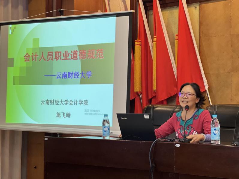 王素疆介绍此次活动旨在学习贯彻党的二十大精神和财政部要求,职能部门党委第十七党支部牵头,组织校内会计人员学习《规范》精神,推进会计诚信体系建设,提高会计人员职业道德水平。施飞峙老师长期从事政府会计准则制度、会计人员职业道德规范等方面的教学和研究,具备扎实的理论功底和丰富的教学经验,并为今天的讲授作了充分准备。希望与会同志认真听讲,全面理解《规范》内容,准确把握《规范》精神,并在具体工作中自觉践行和遵守。