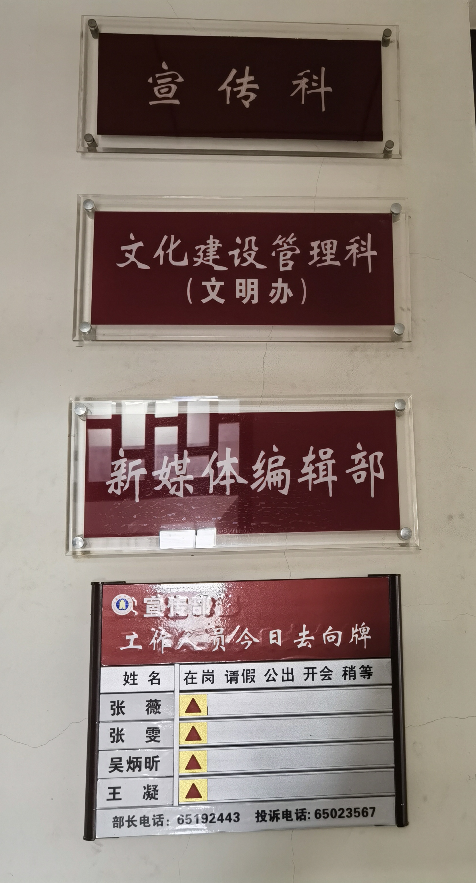 7月5日—7月7日,职能部门党委深入走访校属33个职能(教辅)部门,检查“办事指南牌”和“人员去向牌”(以下简称“两牌”)统一规范情况。其中27个职能(教辅)部门按统一要素和制式完成了“两牌”规范,尚有6个职能(教辅)部门未规范或规范不到位。检查组在现场指出了未规范或规范不到位情形,要求6个职能(教辅)部门一周内规范到位。