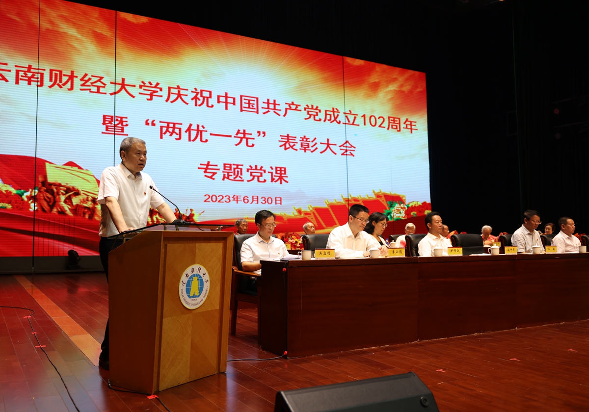 为庆祝党的生日,回顾党的光辉历程,教育和激励学校各级党组织和广大党员干部不忘初心、牢记使命,砥砺前行、接续奋斗,6月30日下午,十大买球官方网站举行庆祝中国共产党成立102周年暨“两优一先”表彰大会。校党委副书记、校长王敏为全体参会党员作专题党课并讲话,大会由校党委副书记陈光瑜主持。