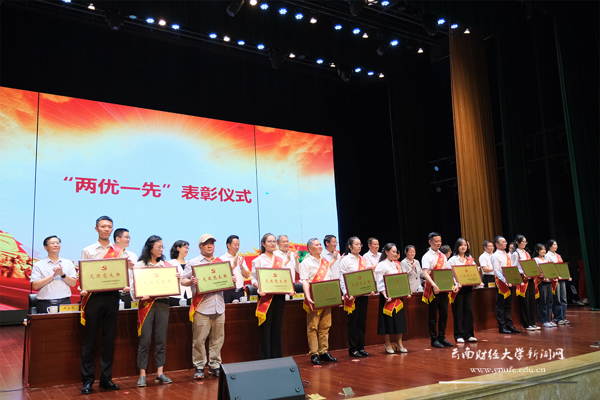 校党委副书记施仲军宣读学校党委“两优一先”表彰决定,对98名优秀共产党员、33名优秀党务工作者、23个先进基层党组织代表予以表彰。国际工商学院本科生第三党支部张菡哲、会计学院研究生第五党支部委员杨秀萍、物流与管理工程学院专职组织员丁章祥分别代表新党员、优秀共产党员、优秀党务工作者发言。