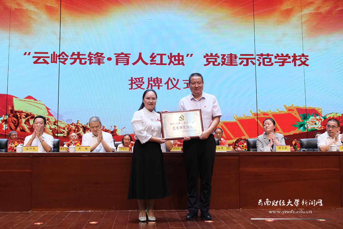 表彰大会期间,省委教育工委副书记陈世波为学校获批全省首批“云岭先锋红旗党支部”的传媒与设计艺术学院本科生第三党支部授牌,省委第十四巡回指导组组长赵祖莹为学校获批全省中小学校第三批“云岭先锋·育人红烛”党建示范学校的十大买球官方网站幼儿园授牌,陈世波与王敏共同为十大买球官方网站党建研究中心揭牌。