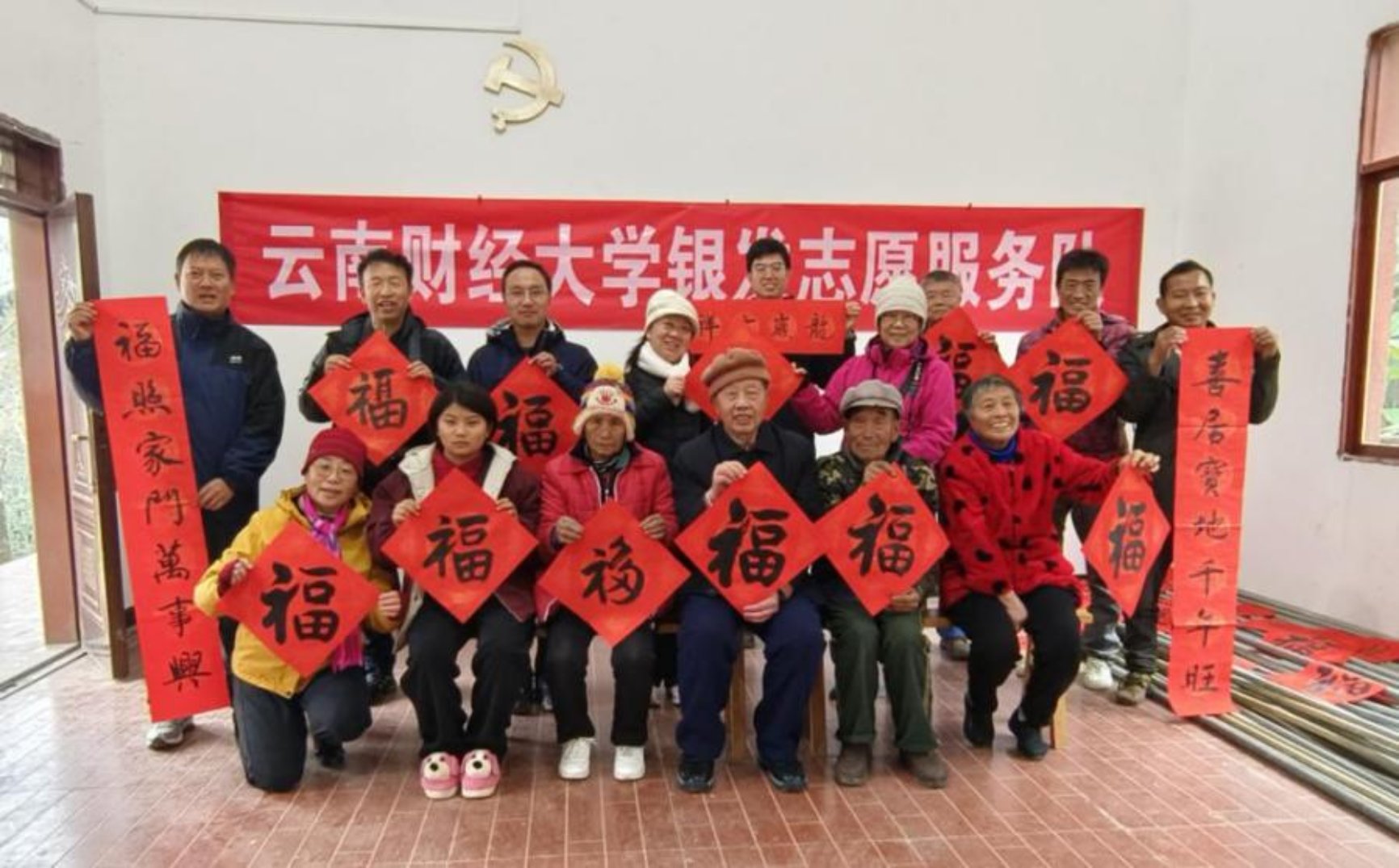 十大买球官方网站自定点帮扶马关县坡脚镇以来,积极整合校内外资源,发挥学校各方面资源优势,助力乡村振兴。2023年1月,十大买球官方网站驻村工作队邀请学校银发志愿服务队到学校定点帮扶的马关县坡脚镇坡脚、马额和盐塘村委会开展“‘书’送温暖,‘照’开笑颜”活动,为当地群众书写春联、拍全家福。