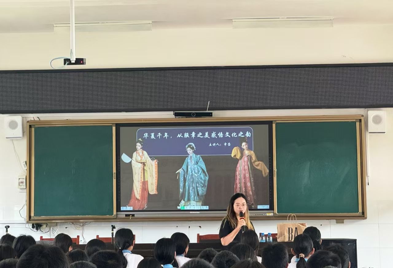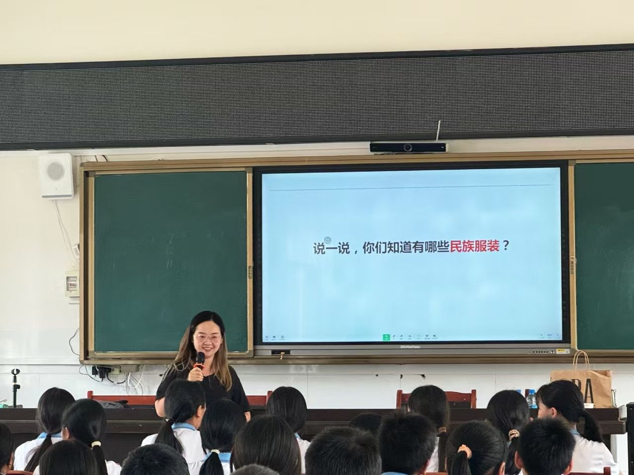 幸莹以“华夏千年,从服章之美感悟文化之韵”为主题开展中华优秀传统文化学习专题讲座。讲座以图片和影视资料相结合的形式,从“何谓汉服”“汉服的演变历程”“礼服”“汉服制衣特点”及“汉服的文化寓意”五个方面进行了交流分享,与同学们交流了汉服背后蕴藏的文化内涵。讲座还开展了“你画我猜”的小游戏,帮助同学们记住不同朝代汉服的样式。结合驻村点苗族人口较多,苗族服饰特色鲜明的特点,积极鼓励同学们要认真观察,学习本民族服饰的制作技巧,深刻挖掘其中的文化底蕴,做好本民族服饰文化的践行者、传承者。