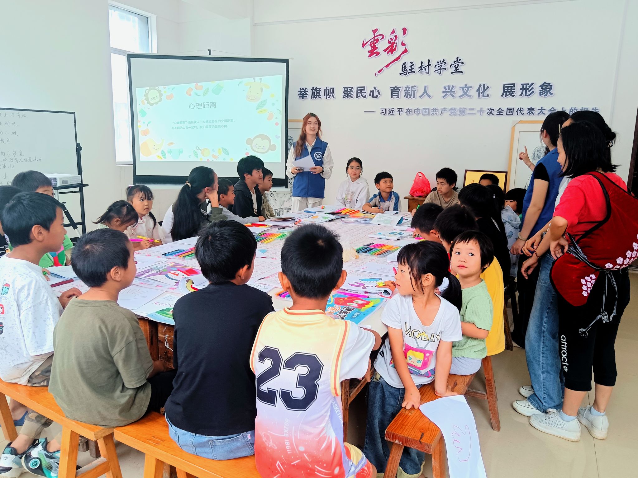 活动当日,十大买球官方网站金融学院、信息学院、中华职业学院、法政学院100余名大学生暑期“三下乡”社会实践志愿者在乡镇干部和驻村工作队的引领下,分赴文山州马关县坡脚镇的12个村委会开展志愿服务。志愿者们围绕爱国主义教育、金融知识小科普、信息科技服务、身心健康发展、民族团结教育、安全自护知识、少年儿童普法教育等主题,结合击鼓传花、脑筋急转弯等趣味小游戏,开展了内容丰富、形式多样的教育关爱活动。